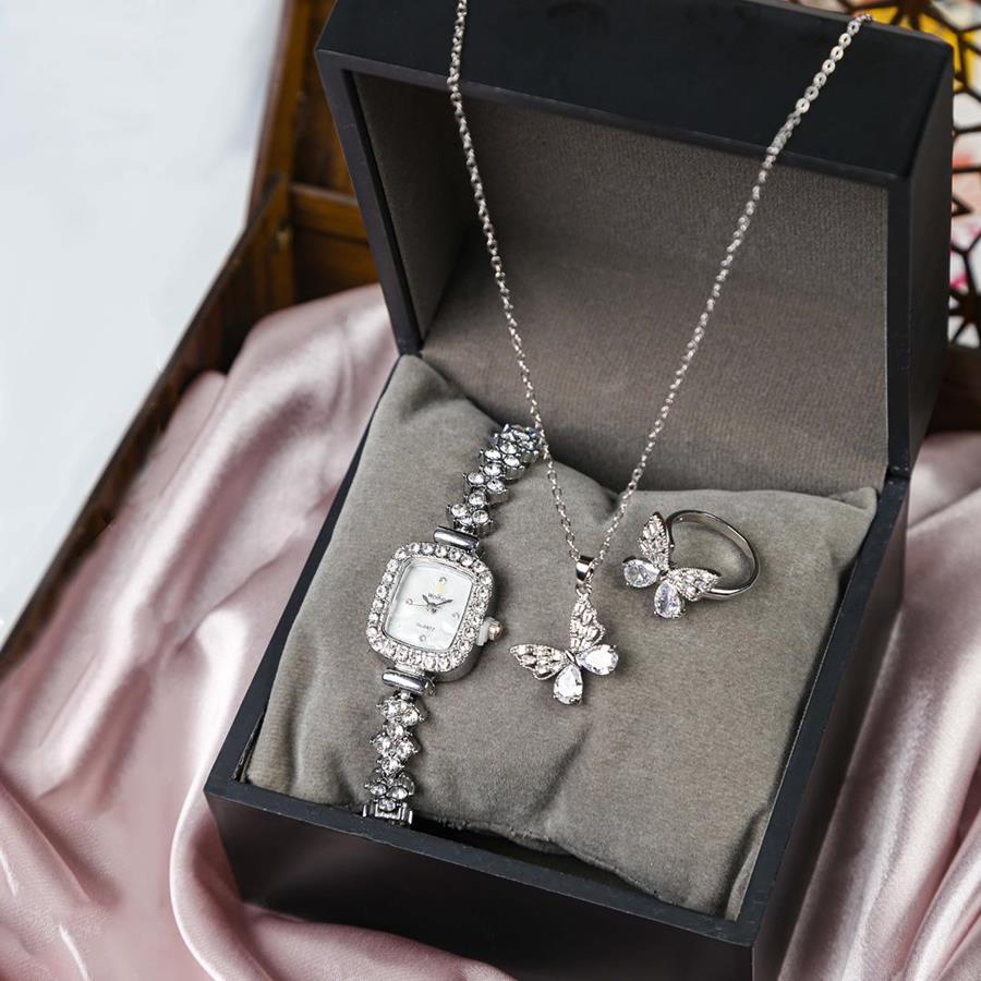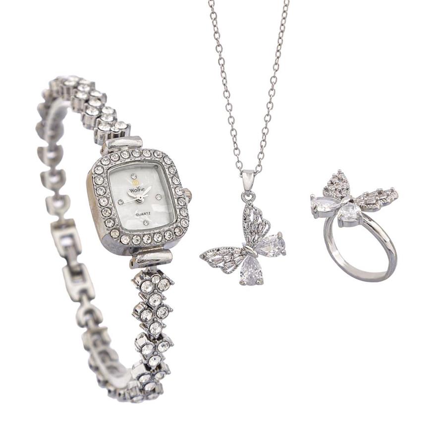 ست دخترانه ساعت و گردنبند و انگشتر Butterfly_White مدل 3747