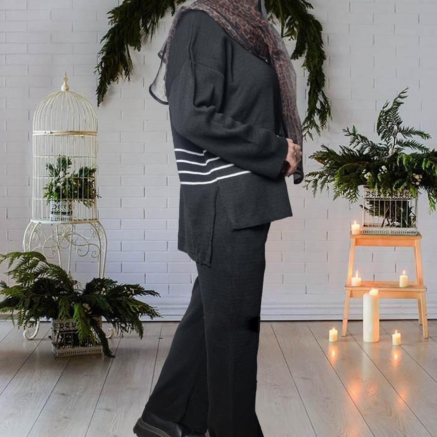 ست بلوز و شلوار بافت زنانه Parnia_Black مدل 3860
